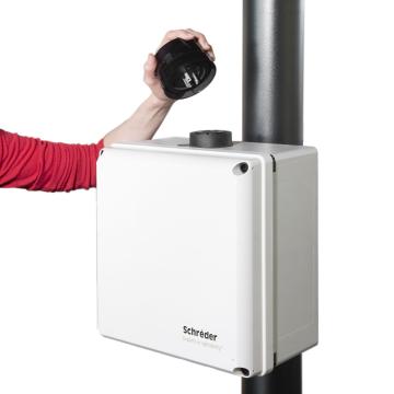 • Para permitir aos utilizadores finais desencadear cenários de iluminação ao mesmo tempo que os impede de modificar as configurações, a solução inclui o multifuncional Schréder ITERRA PRESS wireless. Funciona como um controlo remoto tudo-em-um que dá acesso às funcionalidades essenciais de controlo da aplicação móvel Schréder ITERRA. Como a parte de trás do dispositivo é magnética, proporciona uma vasta flexibilidade para instalação com fácil mudança de localização em qualquer altura.