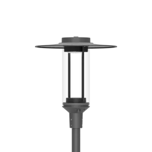 sua elegante forma cilíndrica valoriza os espaços públicos sem se sobrepor à arquitetura circundante. Disponível com ou sem chapéu, proporciona liberdade para criar ambientes distintos, mantendo a coerência visual em todos os projetos.