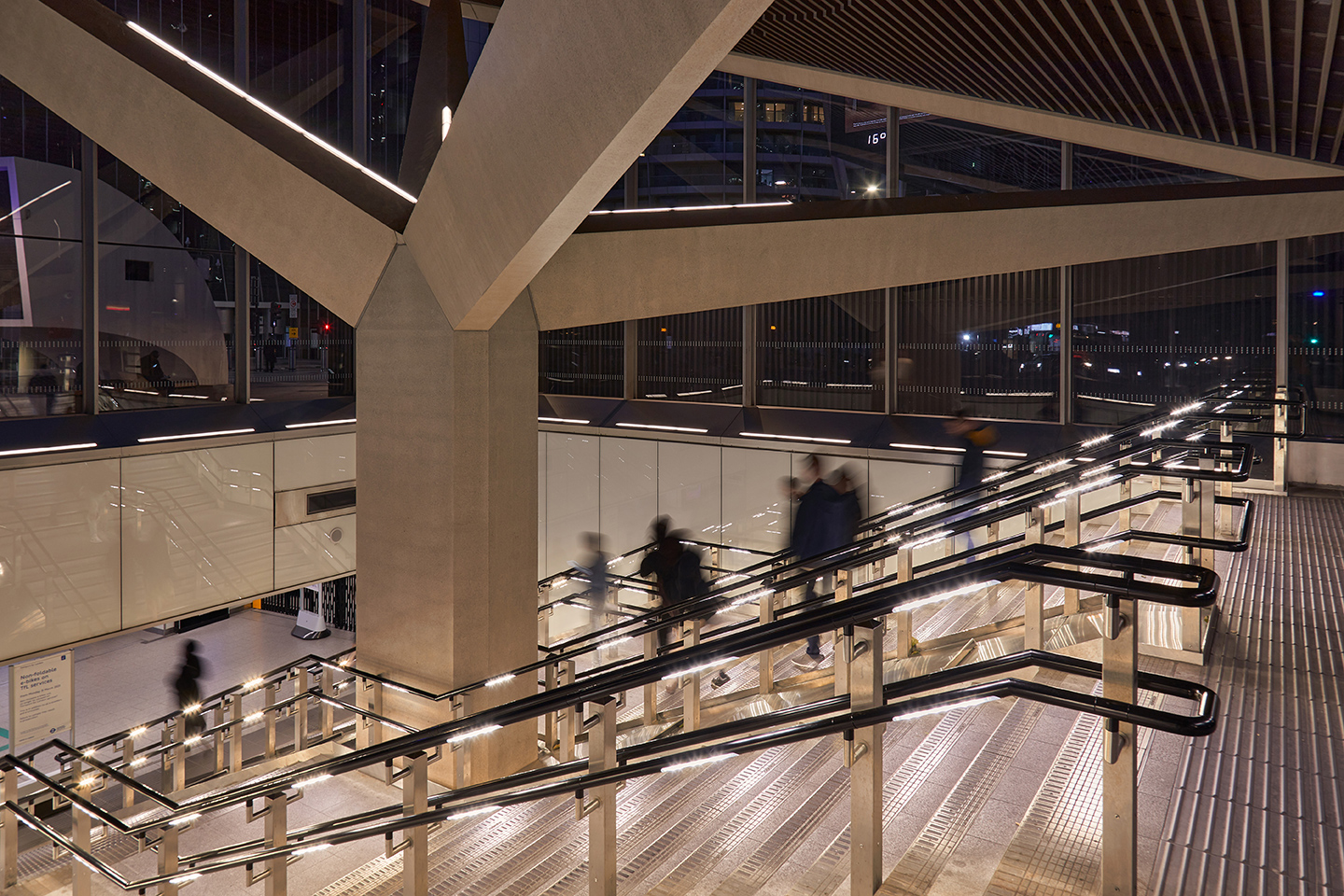 Em colaboração com a WSP e a WW+P Architects, a nossa equipa desenvolveu um design personalizado utilizando o comprovado sistema de módulos LED ALINEA para integração em corrimãos, que tem sido utilizado em várias aplicações em toda a rede ferroviária. O resultado é uma solução de iluminação que equilibra desempenho, conformidade e qualidade arquitetónica, e que é adaptada a uma das estações mais movimentadas da capital.