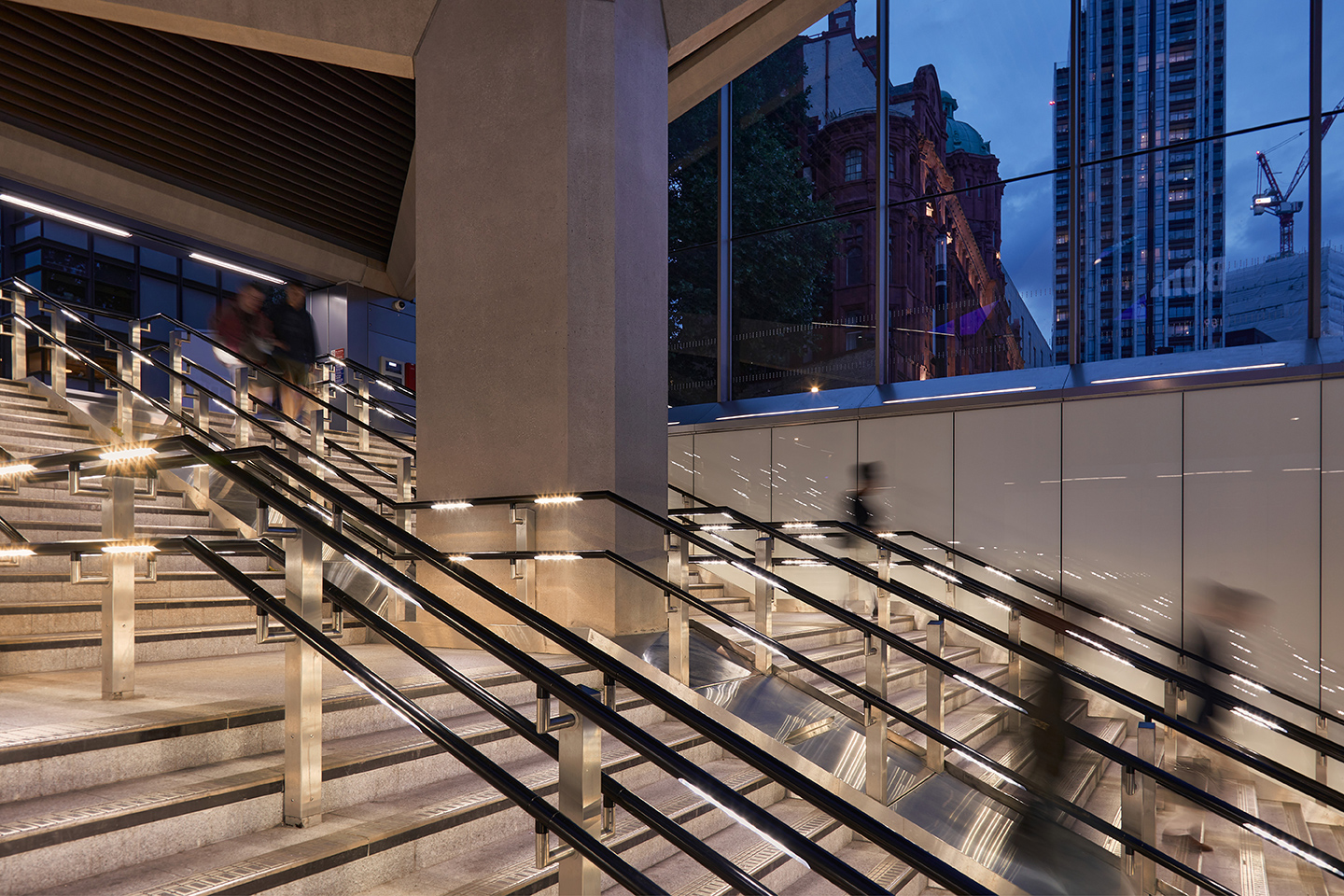 Foram instalados mais de 350 metros de corrimão em três entradas da estação - Cowper Street, Entrada Principal e Entrada Norte - incorporando 234 módulos ALINEA, incluindo iluminação de emergência.