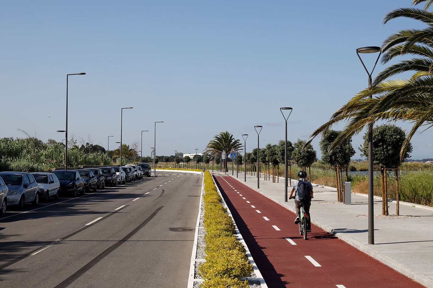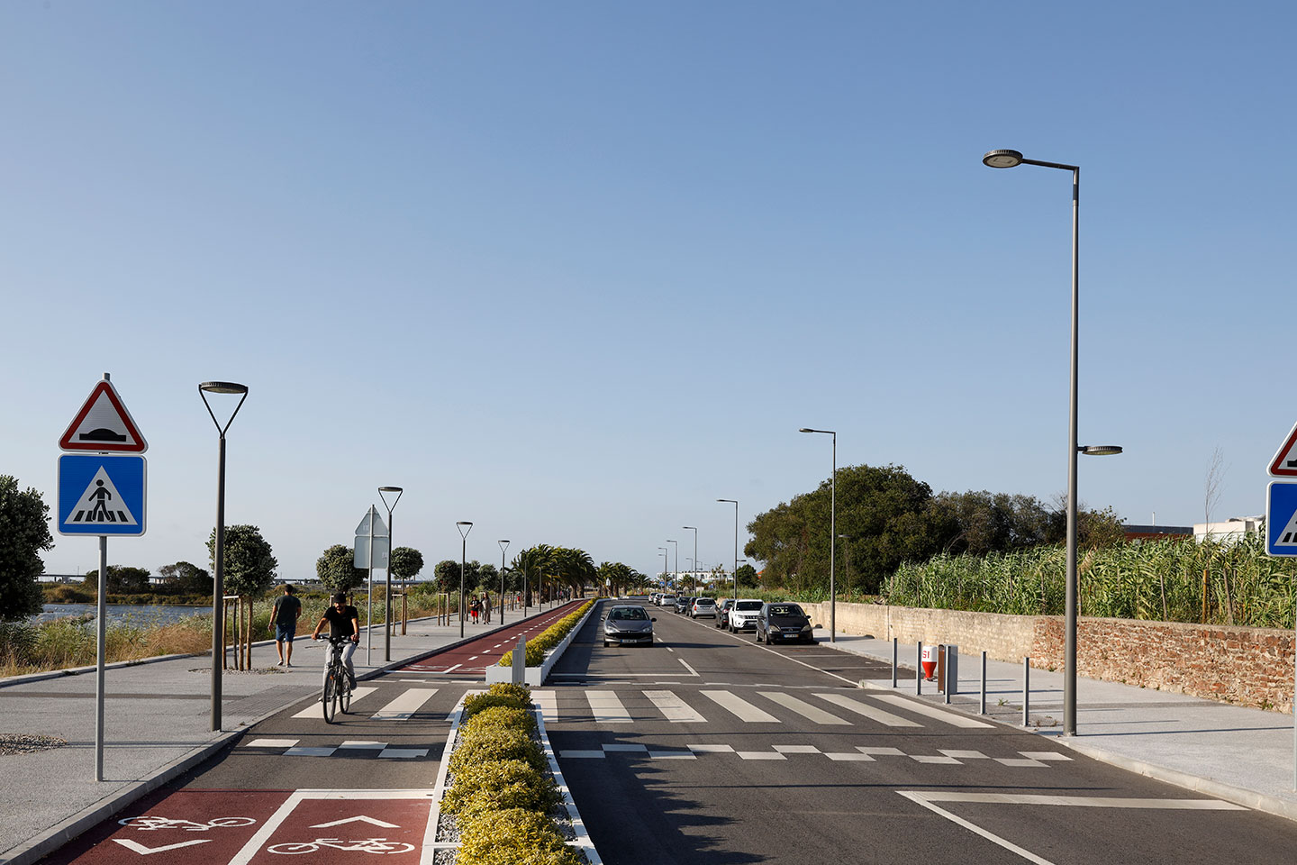 O objetivo era criar um espaço coeso e contínuo de circulação pedonal e ciclável em harmonia com a circulação automóvel para ser utilizado tanto de dia como de noite.