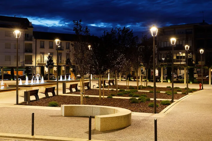 Para a iluminação desta intervenção os responsáveis da Câmara definiram elevados parâmetros de luminosidade, uniformidade e baixo encandeamento de forma a criar espaços seguros, confortáveis e atrativos. Esteticamente exigiam uma luminária que pudesse criar um fio condutor visual em toda área que refletisse o seu legado histórico e ao mesmo tempo a dinâmica da cidade.