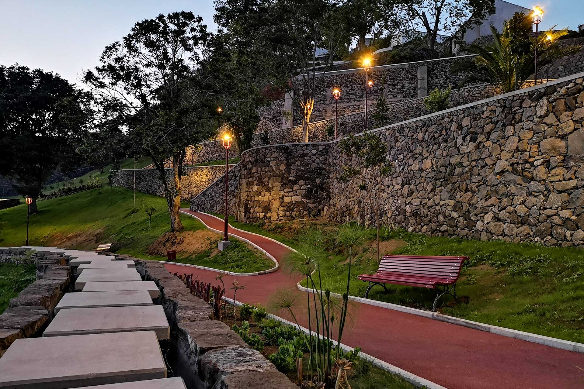Assim, para iluminar os novos caminhos foram utilizadas lanternas tradicionais Valentino em colunas Blenheim também de traça tradicional. Para enquadrar o mobiliário urbano, tanto a luminária como a coluna foram pintadas ao mesmo tom dos novos bancos que aqui e ali convidam ao descanso e ao convívio dos visitantes.
