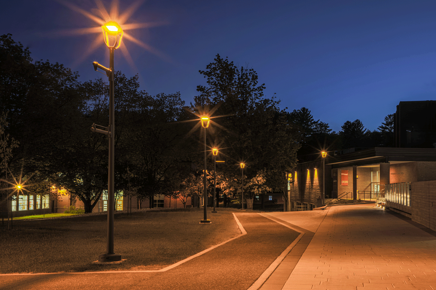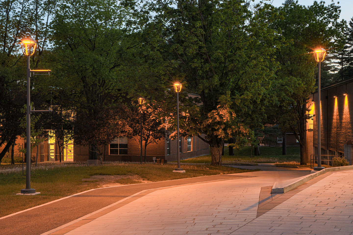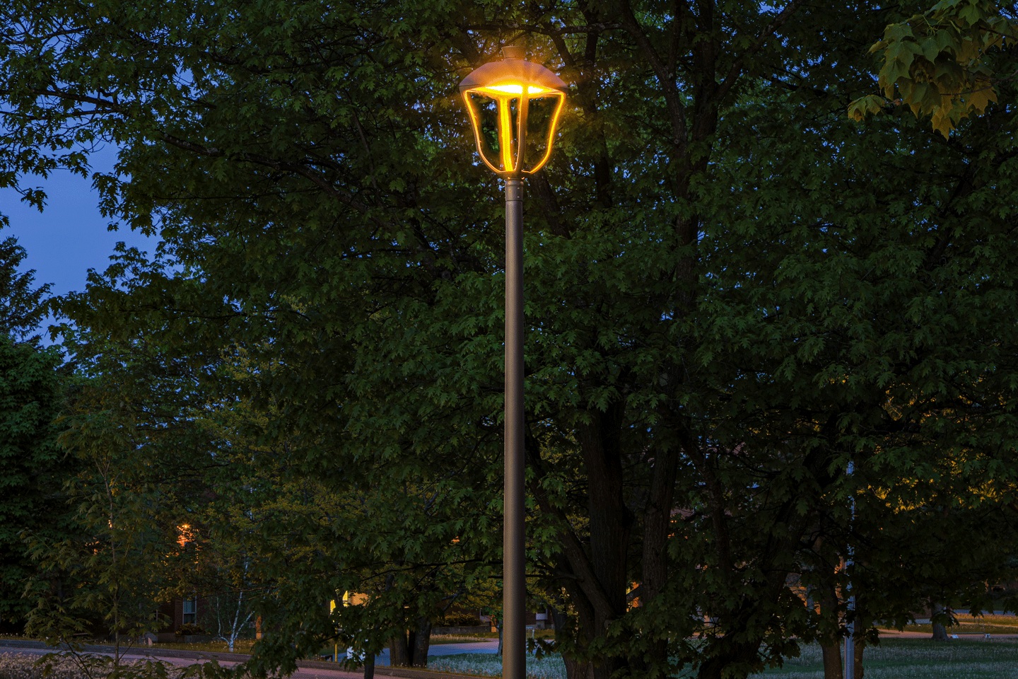 Numa analogia à iluminação pública histórica as lanternas estão equipadas com LEDs âmbar puro (1.800K) para criar um espaço agradável onde estudantes e funcionários podem mover-se em segurança depois de escurecer, ao mesmo tempo que minimizam o uso de energia. Os LEDs de cor âmbar também produzem menos brilho do céu e são menos disruptivos para a vida selvagem, por isso foi uma solução vencedora para todos.