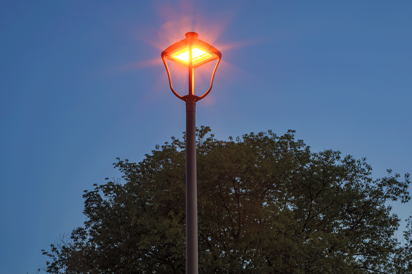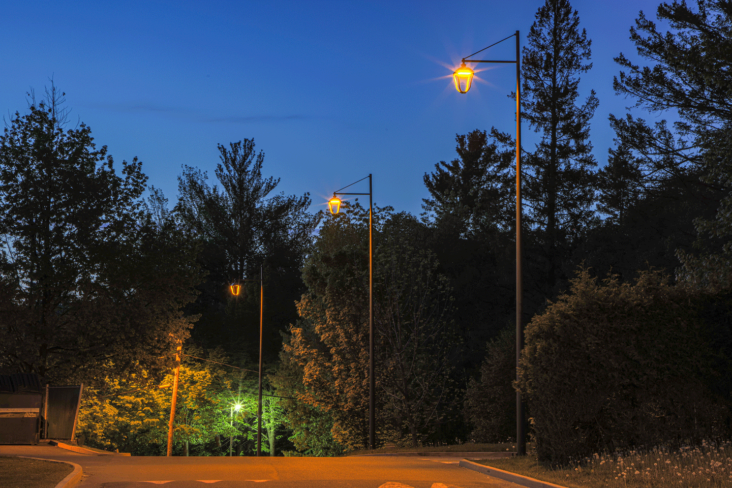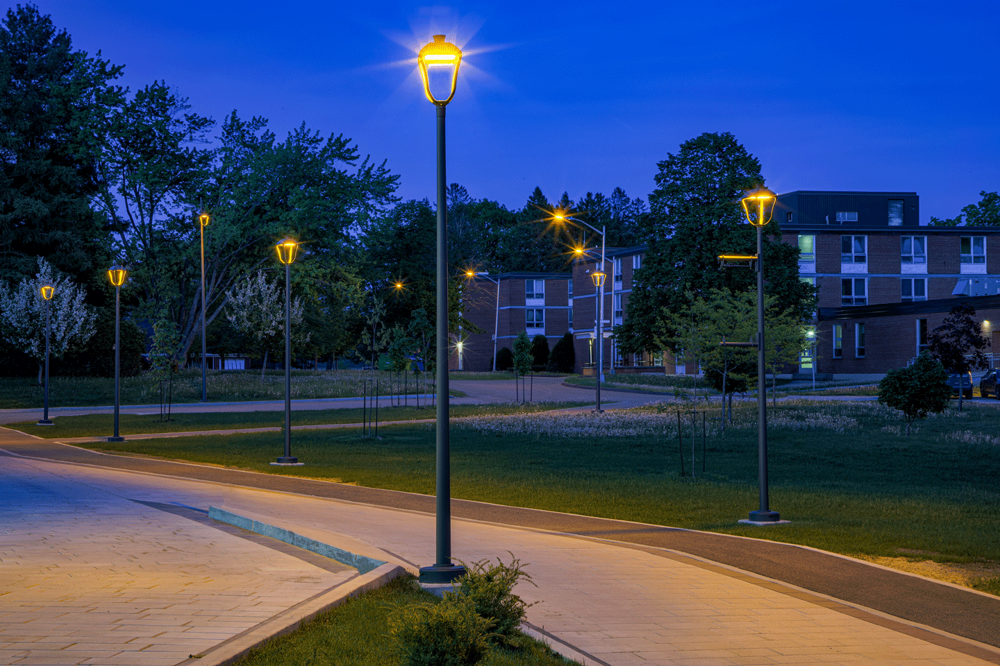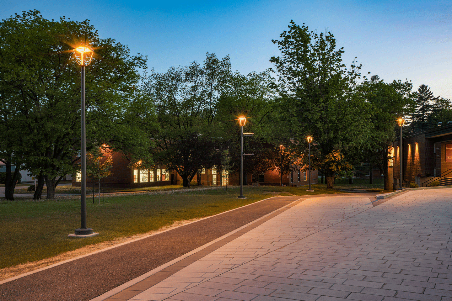 Numa analogia à iluminação pública histórica as lanternas estão equipadas com LEDs âmbar puro (1.800K) para criar um espaço agradável onde estudantes e funcionários podem mover-se em segurança depois de escurecer, ao mesmo tempo que minimizam o uso de energia. Os LEDs de cor âmbar também produzem menos brilho do céu e são menos disruptivos para a vida selvagem, por isso foi uma solução vencedora para todos.