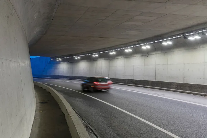 Este sistema de iluminação adaptativa garante perfeita visibilidade e conforto para os motoristas que entram e saem do túnel para que possam detetar quaisquer obstáculos e reagir de maneira segura. Também otimiza o consumo de energia para fornecer uma solução sustentável para o operador do túnel.